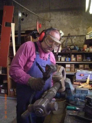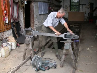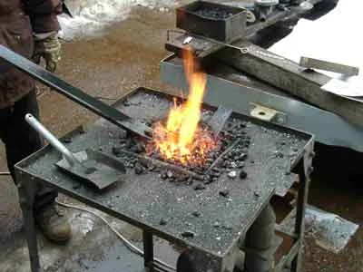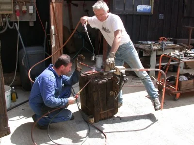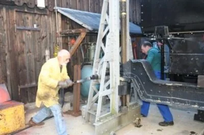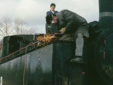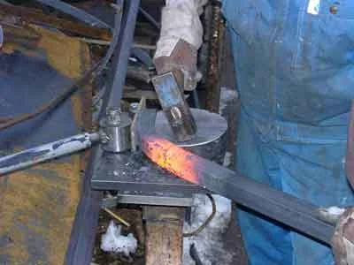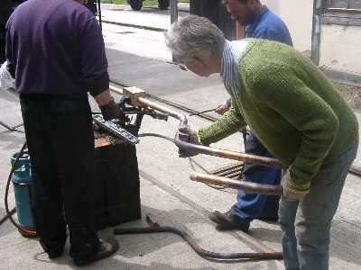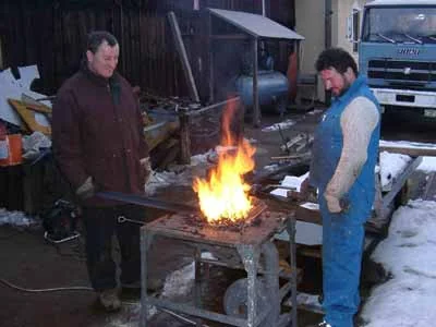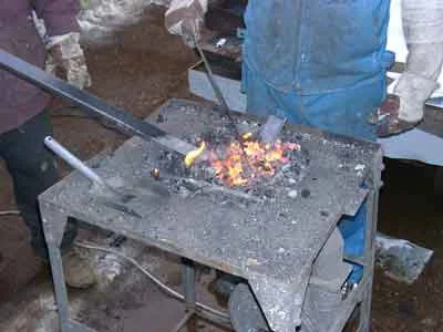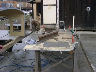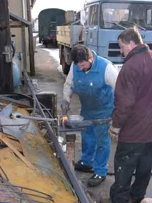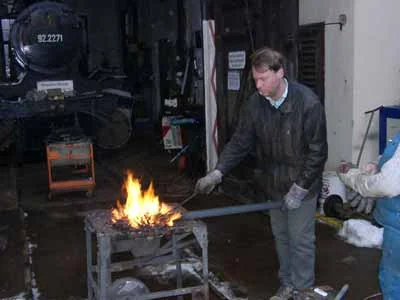 Die Winkeleisen für den Kohlekasten werden erhitzt, um sie zu biegen. (01-2003)