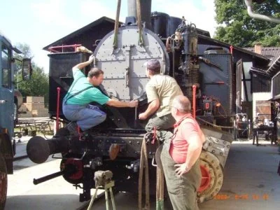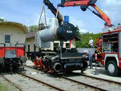 Der Wasserkasten wird auf die Lok gehoben (08-2003)
