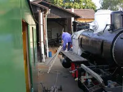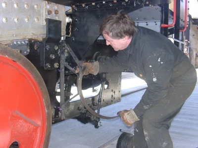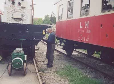 Der Gang der Kolbenstange der Luftpumpe unserer Lok wird geprüft (04-2006)