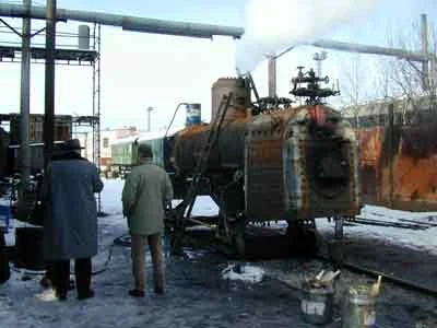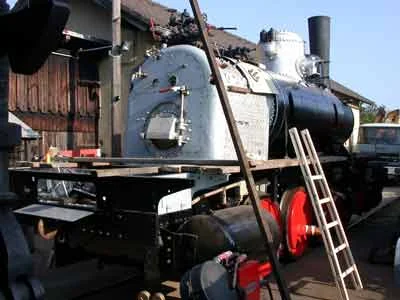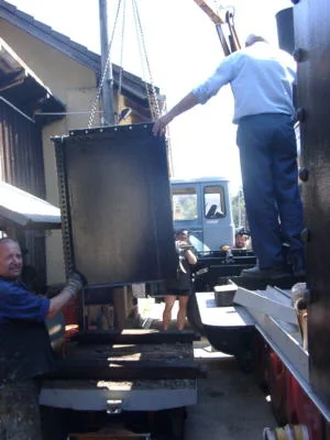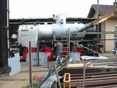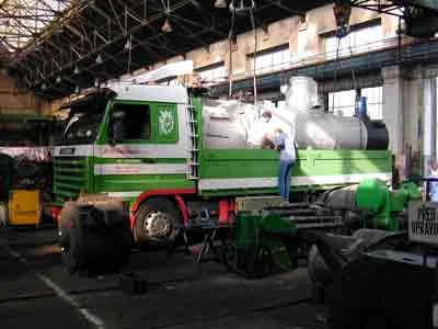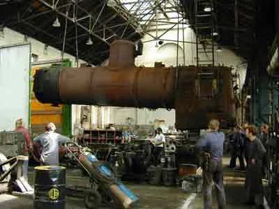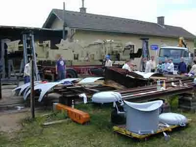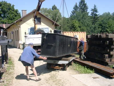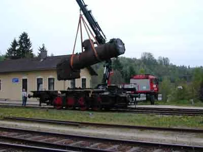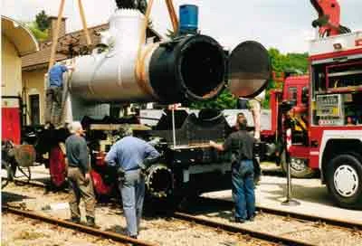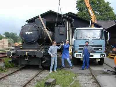Der Kessel wird in der Werkstätte Ceske Velenice abgeladen und anschließend aufgearbeitet. (04-2000)