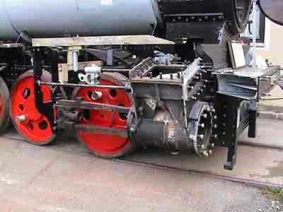 Das komplett überholte Fahrwerk der Lokomotive wird zur Aufnahme des Kessels bereitgestellt (05-2001, Schröter)