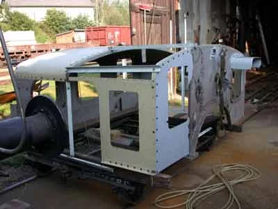 Vorderansicht der halb zusammengebauten Lok. (05-2002)
