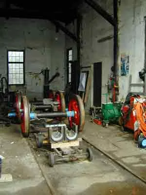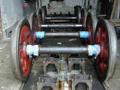 Die Achsen und Lager werden im Heizhaus instandgesetzt. (08-2000)
