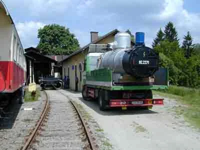 Der Kessel trifft beim Heizhaus in Zwettl ein. (05-2001)