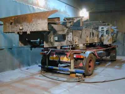 Der Rahmen wird im RHL Zwettl sandgestrahlt und aufgearbeitet. (07-2000)