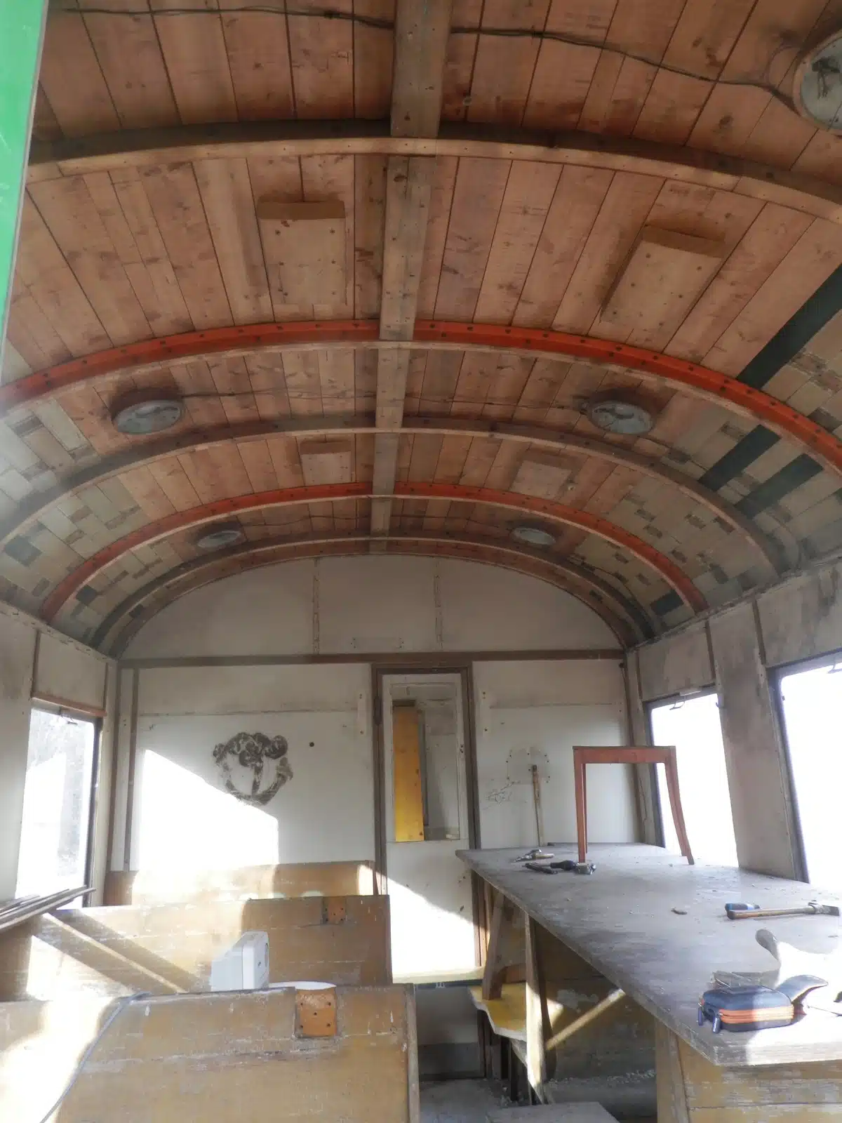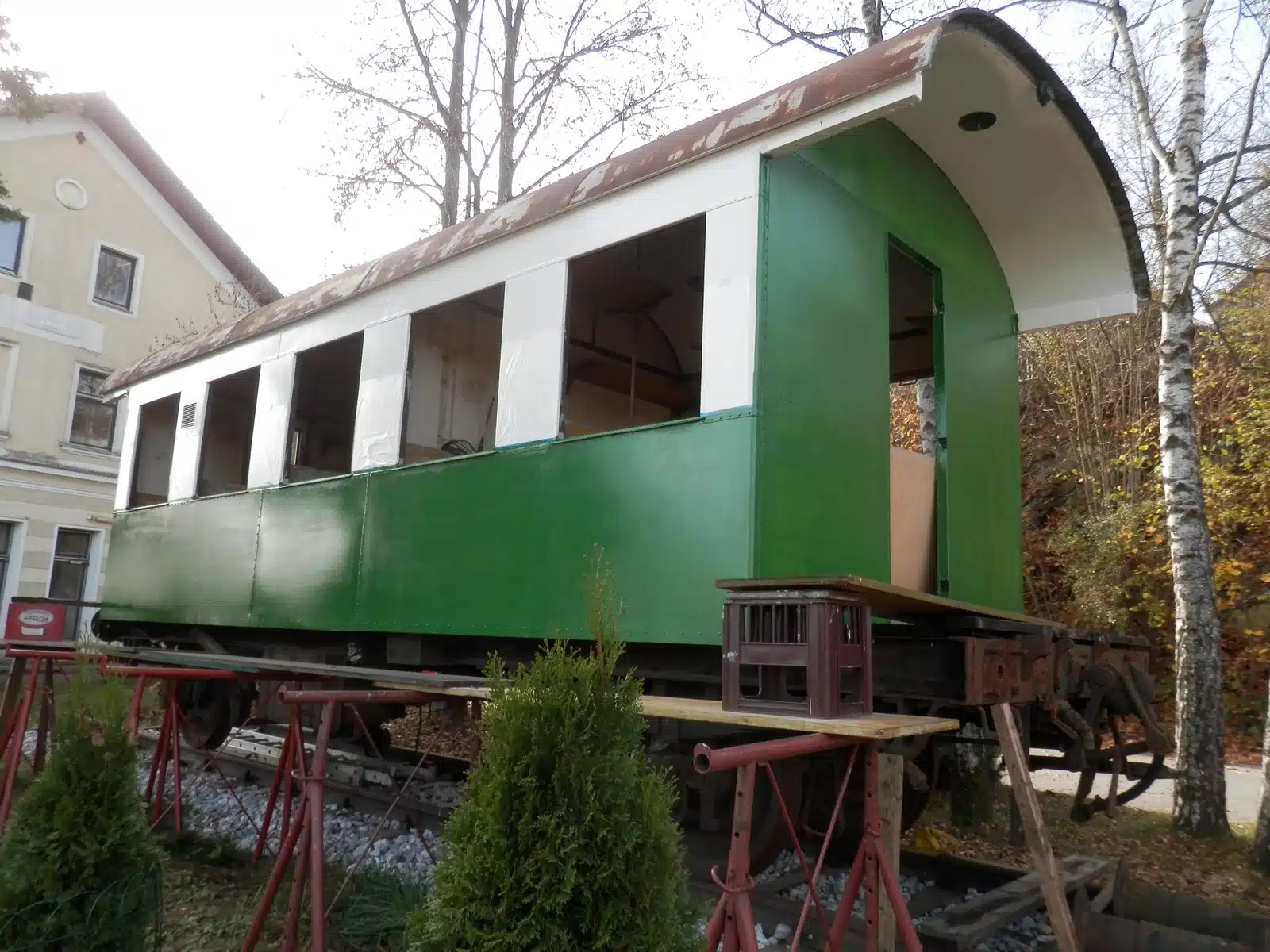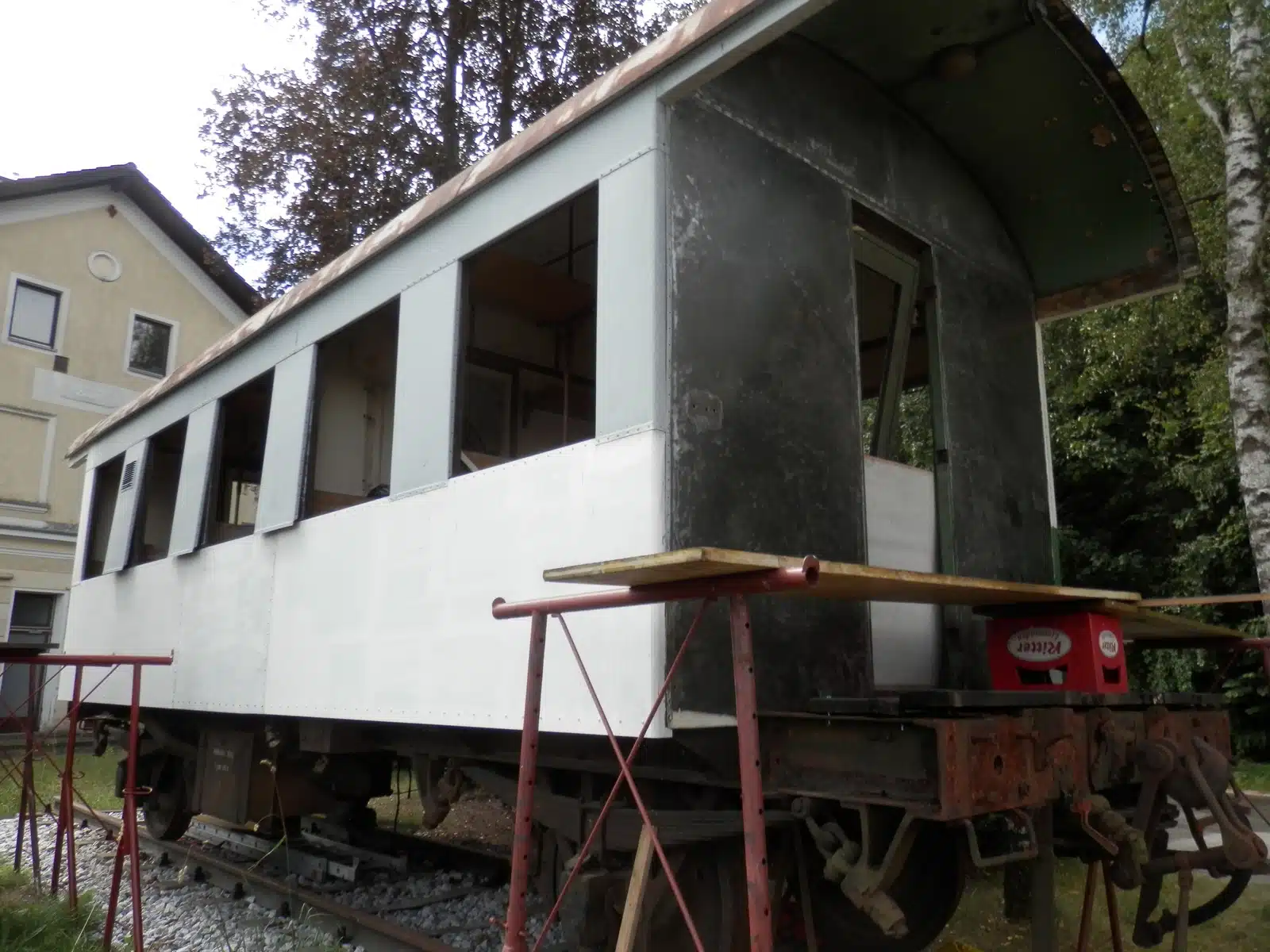 Der Wagen ist nicht für den Fahrdienst vorgesehen, sondern als Zusatzraum unseres Museum. Er steht als Ausstellungsstück neben dem Bahnhof. Das Prädikat Ausstellungsstück muss er sich aber erst verdienen.