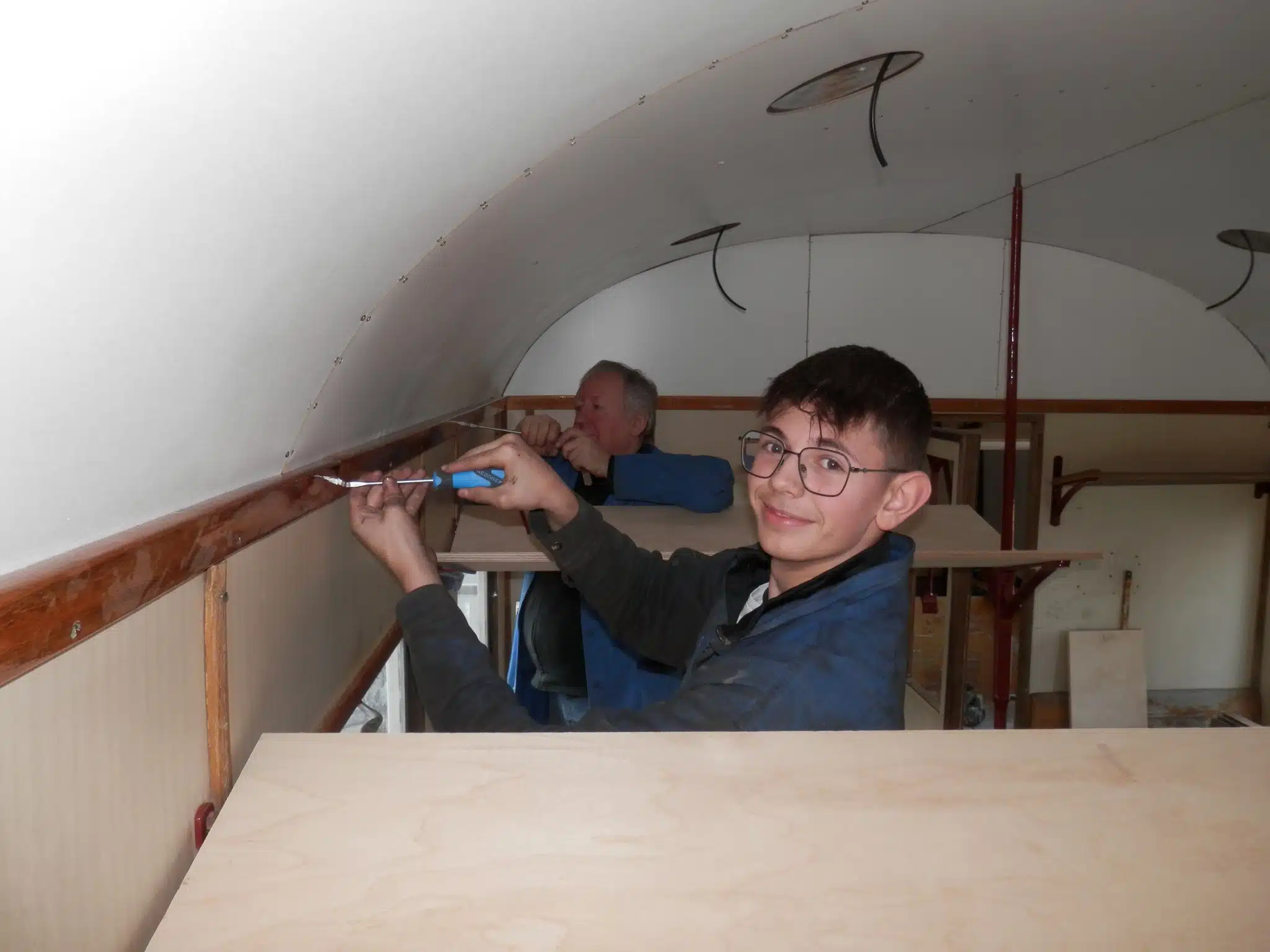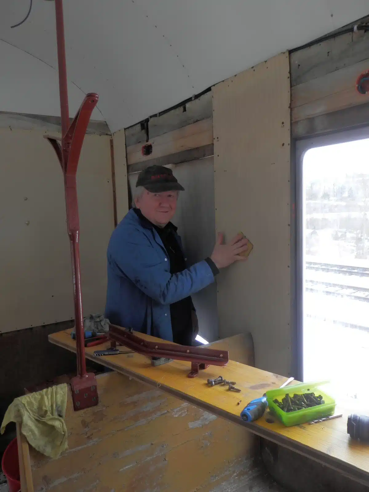 Gründliche Reinigung der Wände vor der Montage der Gepäckablagen (21.02.25, Karl Wasinger)