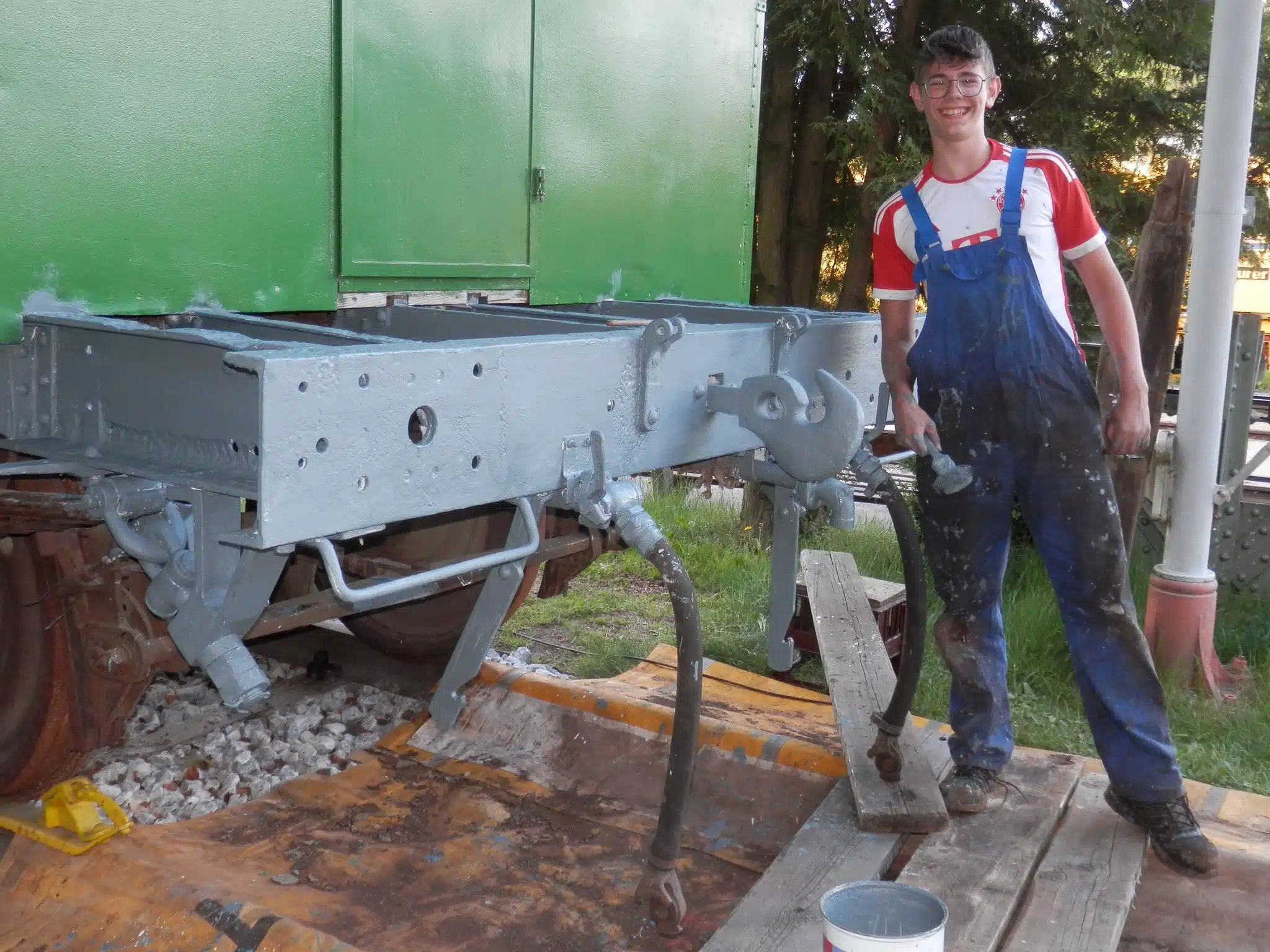 Jan grundiert die vordere Bühne des Wagen 183 (3.5.25)