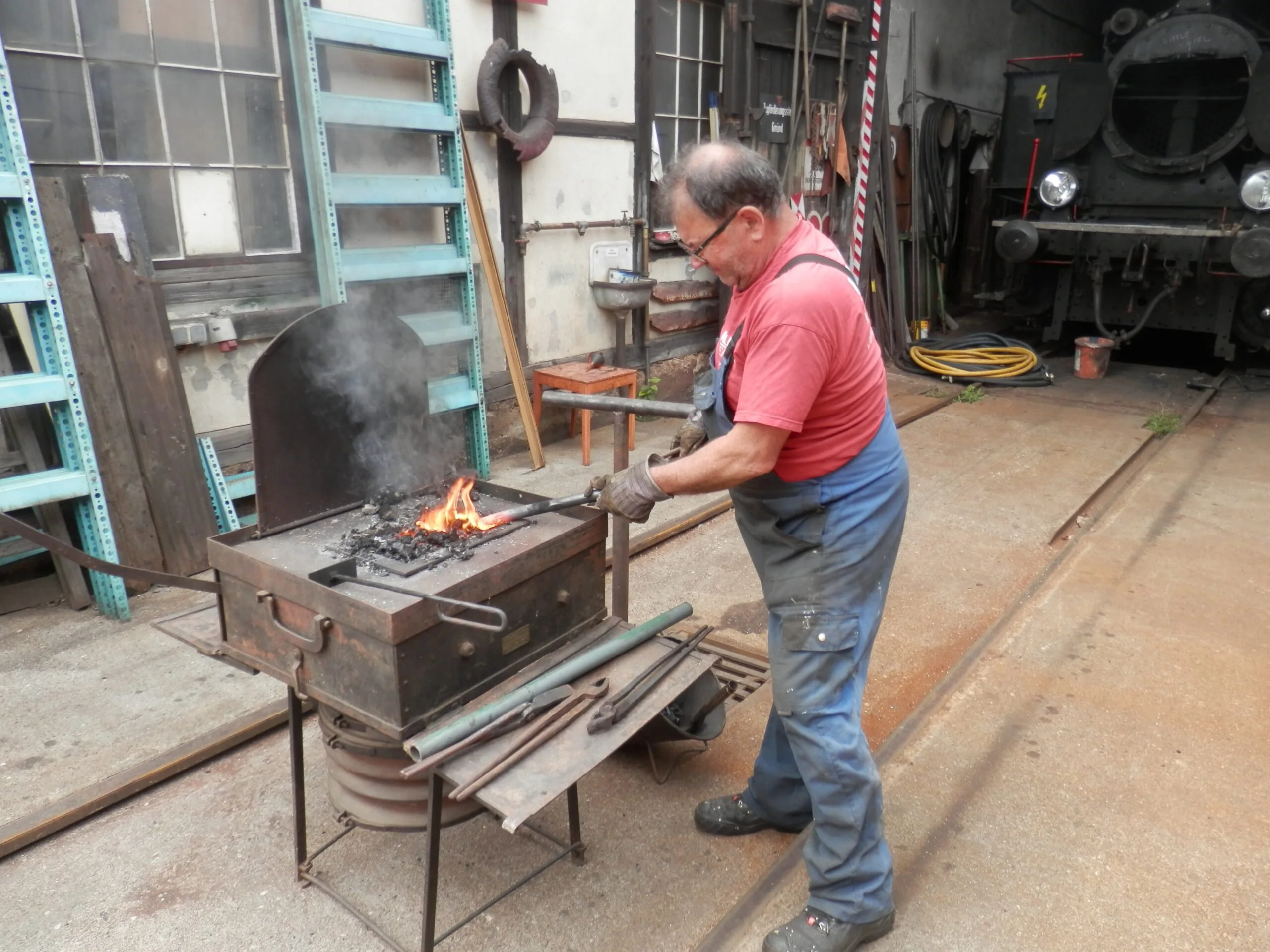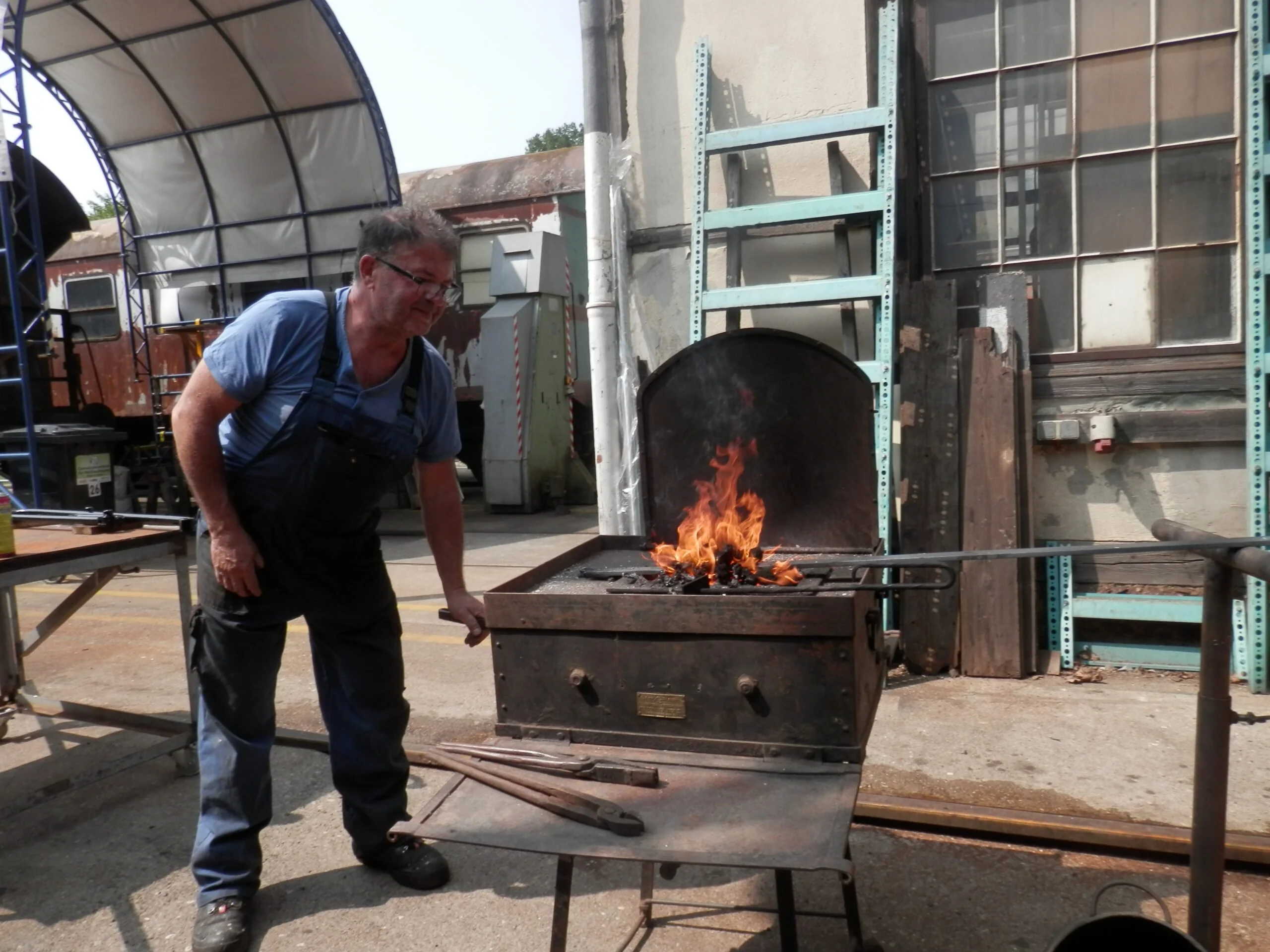 Vorlegestange: Das Rundmaterial für ein Teil der Vorlegestange wird angewärmt (25.06.10, Karl Wasinger)