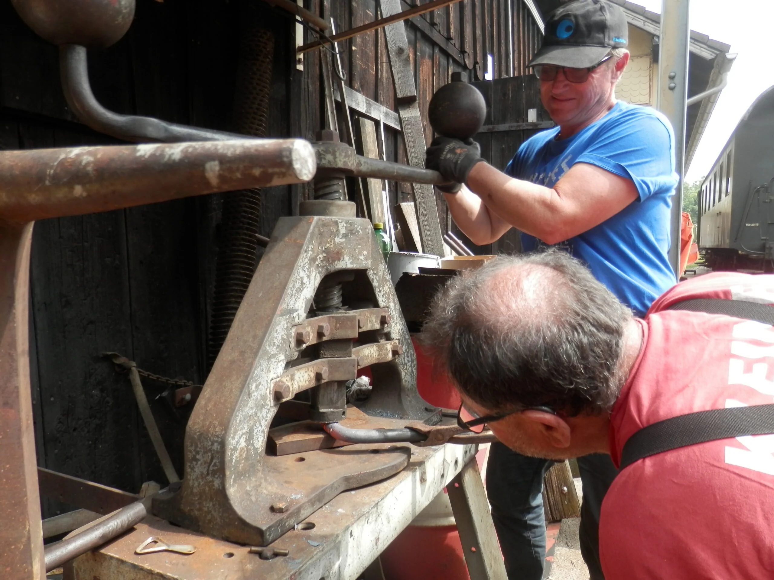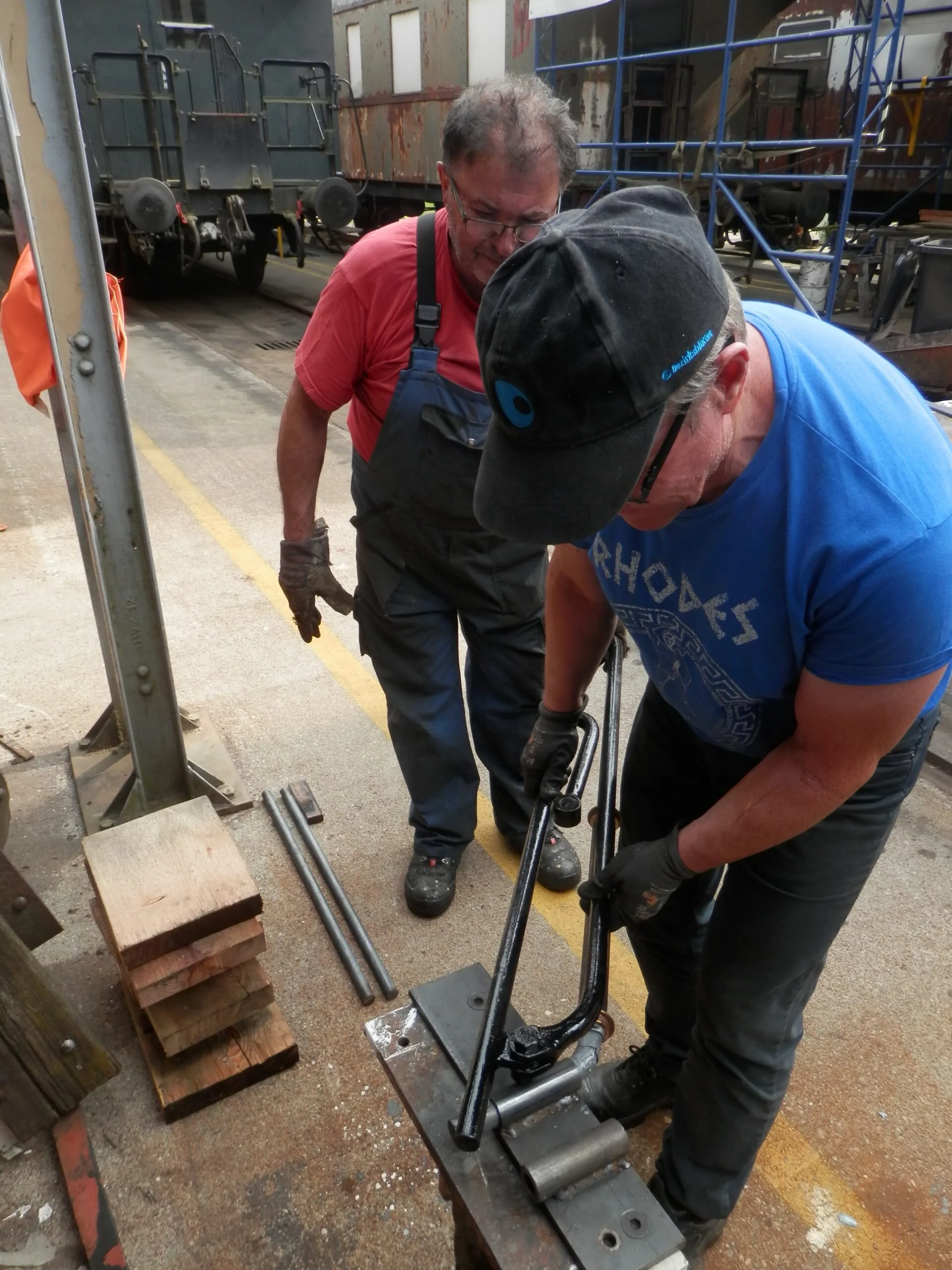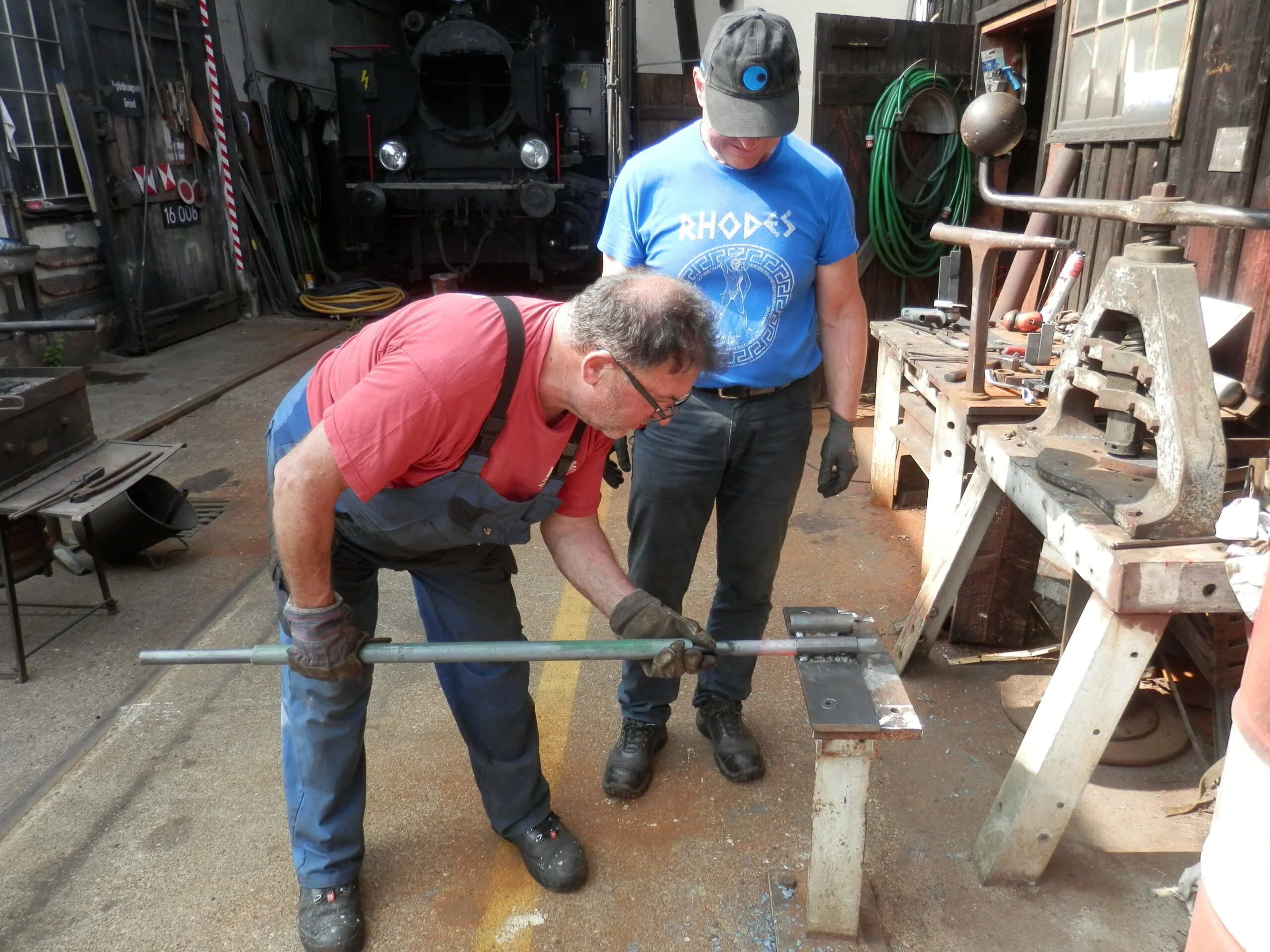 Die Querstrebe der Vorlegestange wird gebogen (25.06.10, Karl Wasinger)