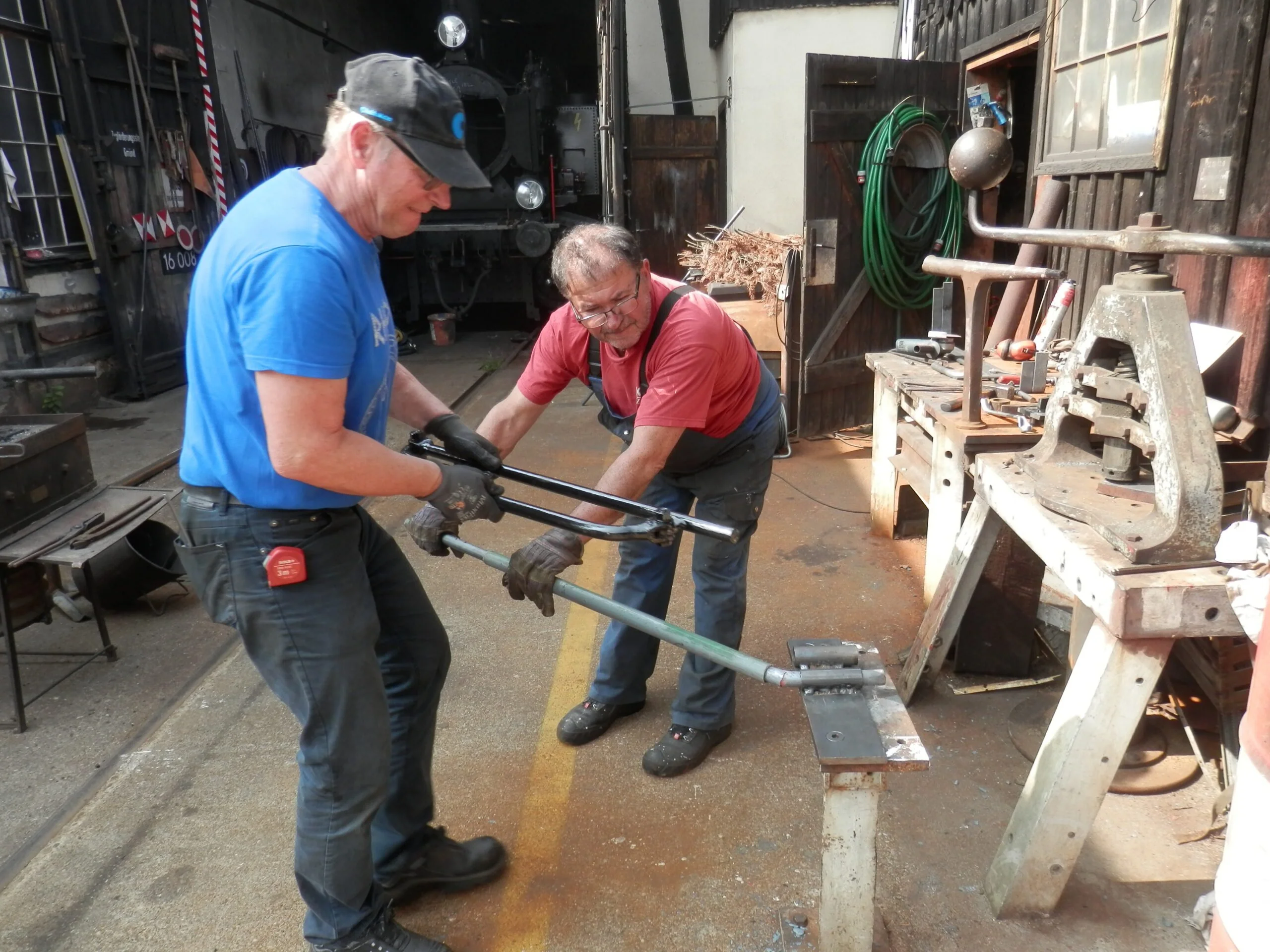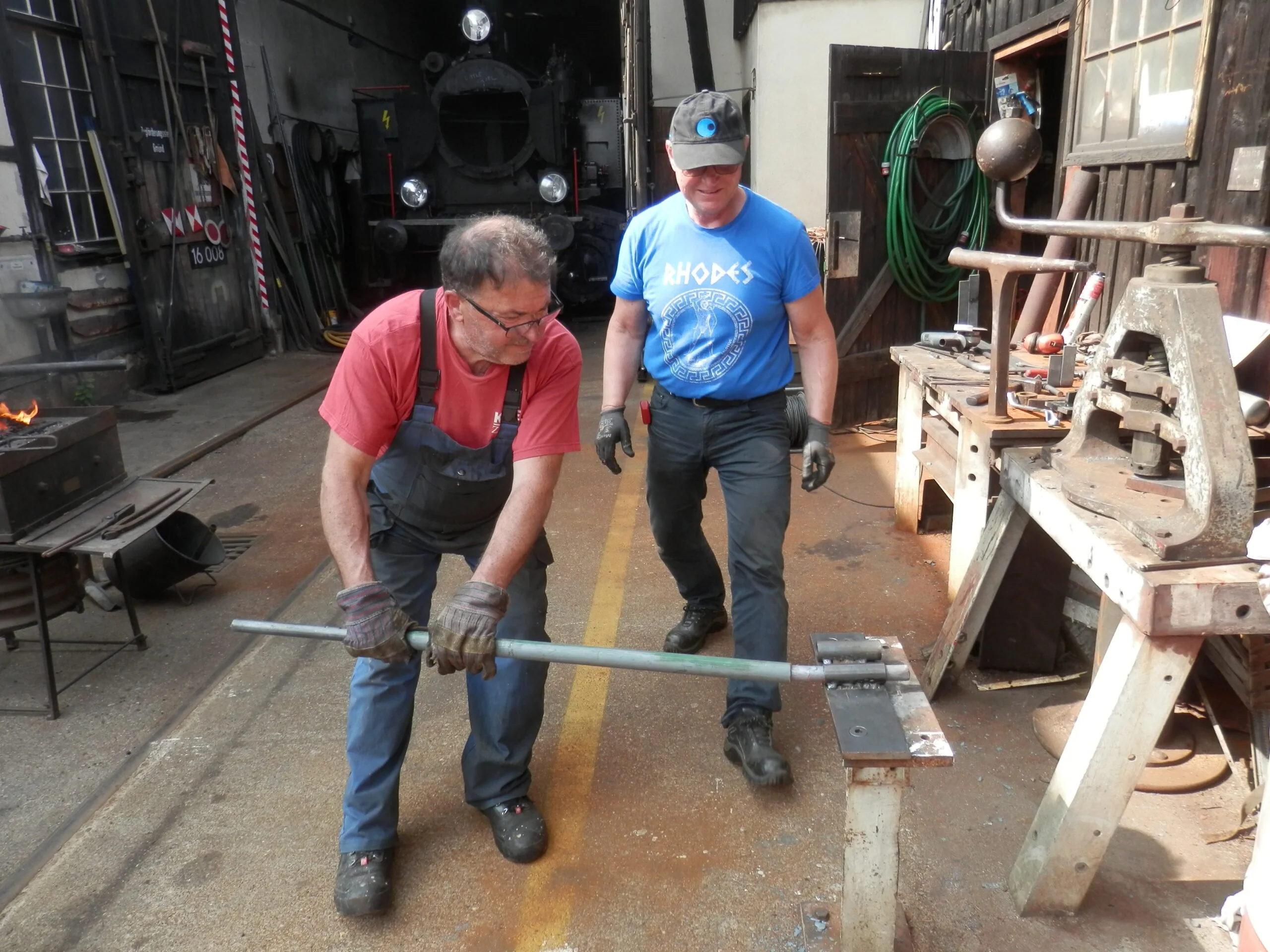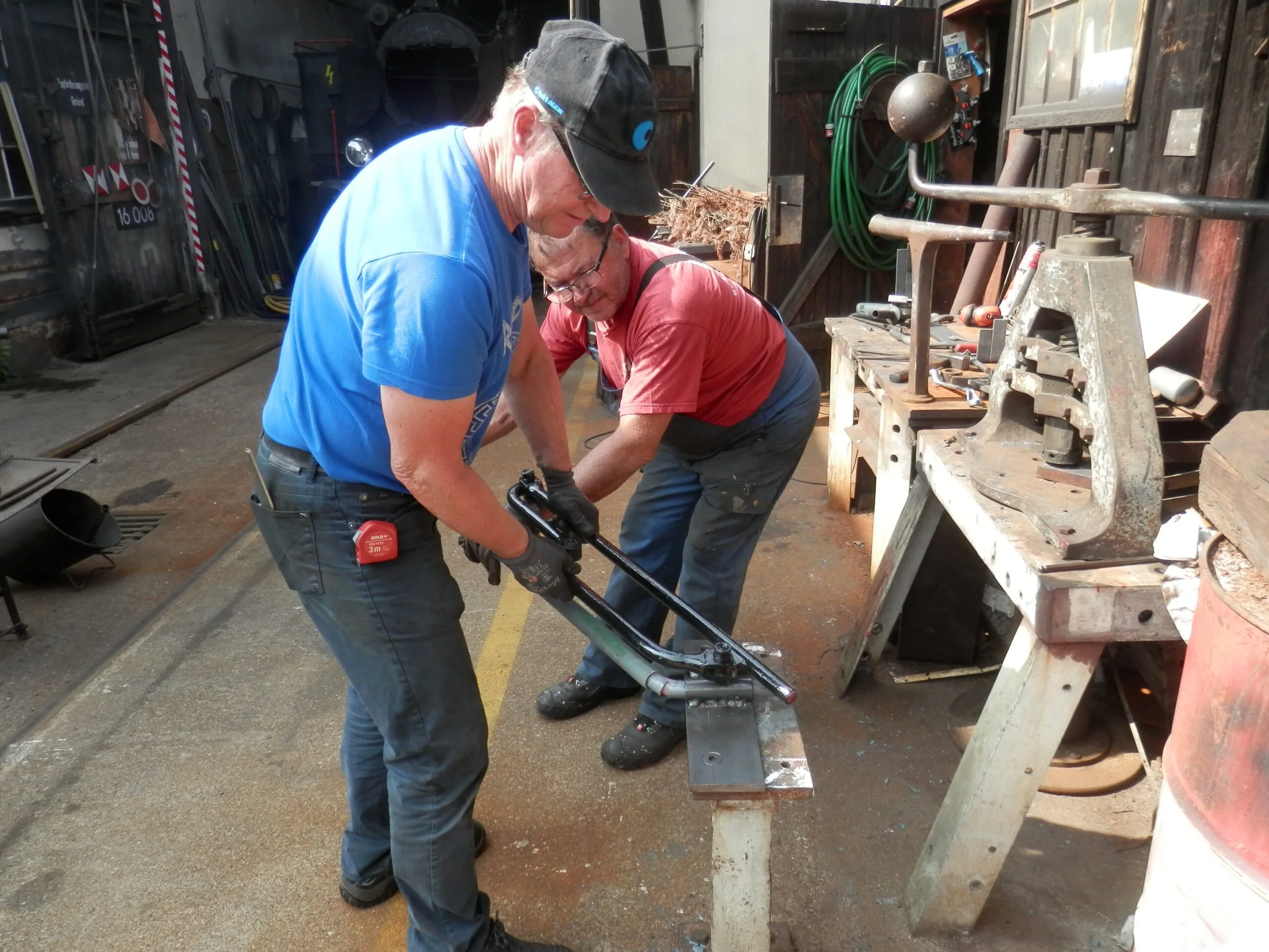 Die Querstrebe der Vorlegestange wird gebogen (25.06.10, Karl Wasinger)
